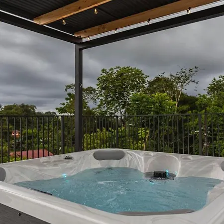 Offering a Jacuzzi for a relaxing experience, Modern Loft, Volcano View La Fortuna villa is located 10 minutes by car from the Arenal Vida Campesina. Providing guests with Wi-Fi and a private parking lot, this villa is 3.9 km from the Chachagua River.